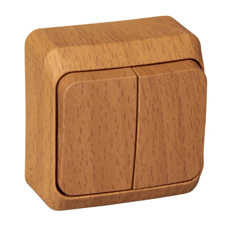 Выключатель двухклавишный наружного монтажа 10А IP20 цвет бук схема 5 предназначен для коммутации нагрузки до 2300 Вт (при 220–250 В) в однофазной сети. Подходит для управления двумя независимыми источниками света - например, люстрой и бра, или зонами освещения в комнате. Устанавливается на стену в местах, где невозможна скрытая проводка: деревянные дома, хозпостройки, коридоры, лестницы, подъезды. Применяется в условиях сухих помещений с нормальной влажностью.