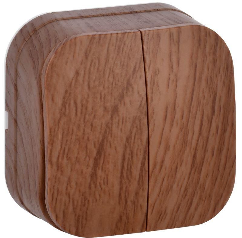 - Выключатель двухклавишный наружный 10А дуб ВС20-2-0-ХД - оптимальный выбор, если нужен стильный, но недорогой вариант без встраивания в стену