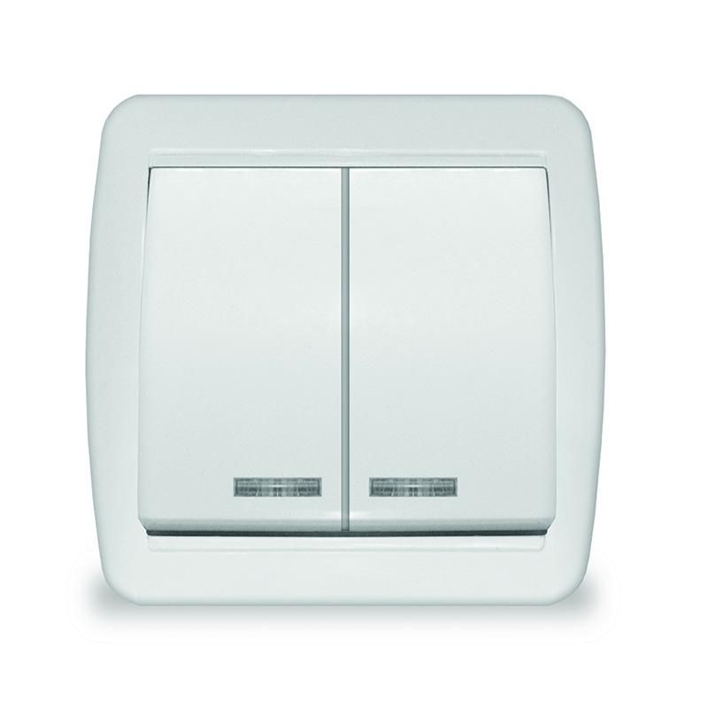 Этот двухклавишный выключатель управляет двумя независимыми световыми цепями - например, основным освещением и подсветкой зеркала, или потолочными светильниками и ночником. Он рассчитан на использование внутри помещений с умеренной влажностью, где возможны случайные брызги воды. Применяется в жилых домах, квартирах, офисах, гостиницах и других объектах, где требуется удобное и безопасное управление освещением.