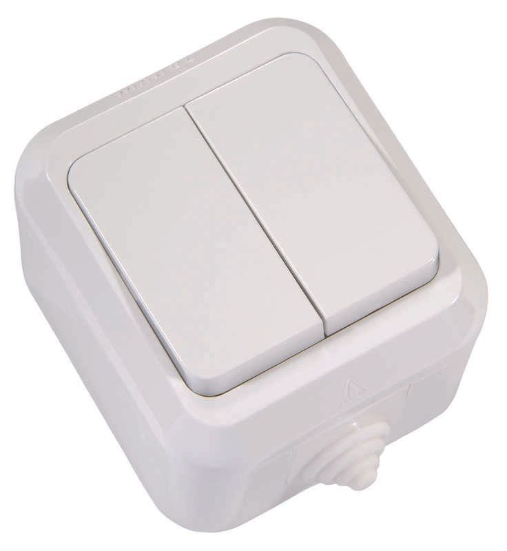 Выключатель двухклавишный белый брызгозащищенный IP44 - 18301 Makel