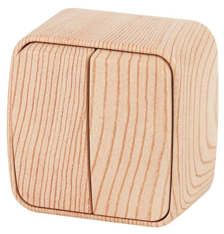 Выключатель двухклавишный наружный (открытой установки) сосна 10А 250В винтовые зажимы Intro Polo 3-104-11 - Б0036105 ЭРА