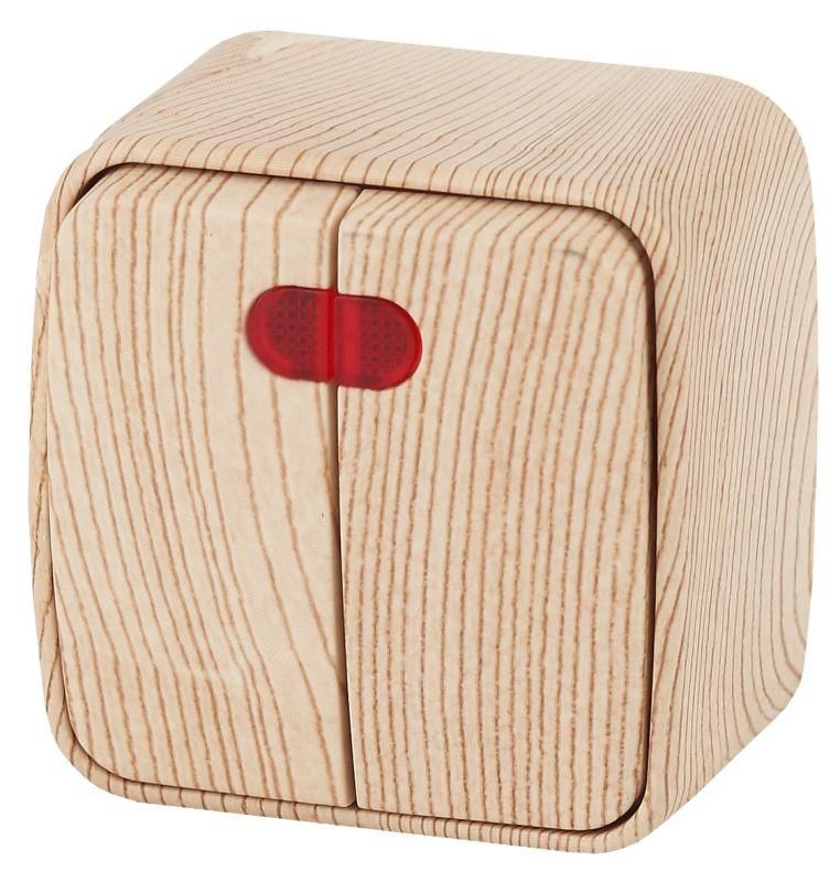 Выключатель двухклавишный наружный (открытой установки) с подсветкой сосна 10А 250В винтовые зажимы Intro Polo 3-105-11 - Б0036106 ЭРА