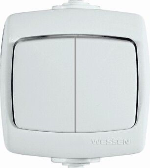 Выключатель двухклавишный наружный 6А 250В белый IP44 используется для коммутации светильников и бытовых приборов мощностью до 1380 Вт. Подходит для установки в ванных комнатах, туалетах, подъездах, гаражах, на улице под навесом - там, где требуется защита от брызг воды и пыли. Каждая клавиша управляет отдельной цепью, что позволяет включать/выключать два участка освещения независимо.