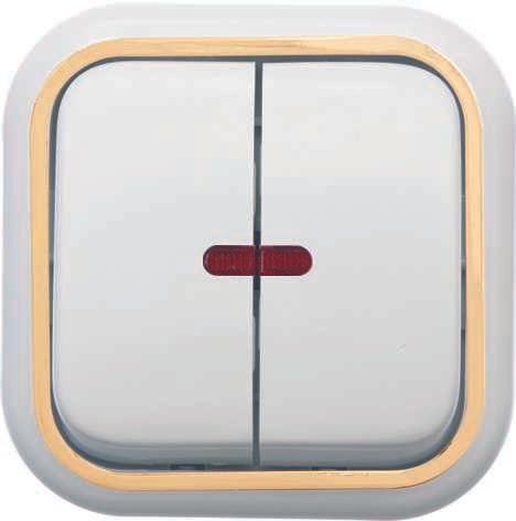 Выключатель 2-клавишный 10А IP20 с индикацией белый/золотой используется для включения и выключения двух независимых световых цепей - например, основного и дополнительного освещения, люстры и бра, зон в комнате. Подходит для жилых помещений, офисов, административных и производственных объектов, где нет повышенной влажности или запыленности. Не предназначен для управления силовым оборудованием, двигателем или нагревательными приборами мощностью выше 2,5 кВт.