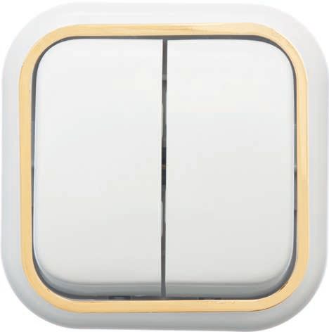 Выключатель 2-клавишный 10А IP20 белый/золотой от Кунцево-Электро - это надёжный коммуникационный элемент для управления двумя группами светильников в помещениях с нормальными условиями эксплуатации. Артикул 7635 подходит для открытой установки в жилых, офисных и легкопромышленных объектах.