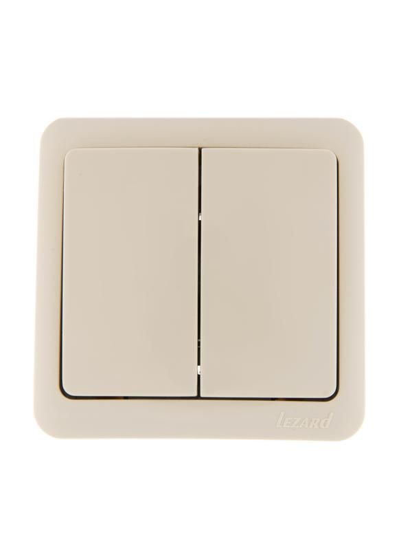 Выключатель двойной 1-полюсный 10А IP20 крем от бренда Lezard, артикул 751-0300-101, предназначен для коммутации освещения в жилых и административных помещениях. Относится к серии VIOLA и обеспечивает надёжное управление двумя световыми группами через одну клавишу на каждую цепь.