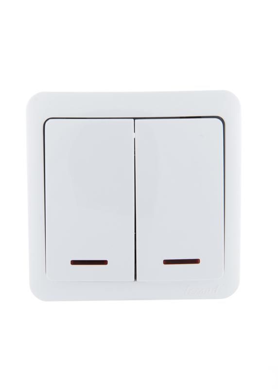 Выключатель 2-клавишный 1-пост с подсветкой белый 10А IP20 от бренда Lezard, артикул 751-0200-112, предназначен для коммутации освещения в двух зонах - например, ванной и туалета, или светильников на потолке и стене. Модель из серии VIOLA сочетает надёжную механику, индикацию состояния и компактный дизайн для открытой установки.