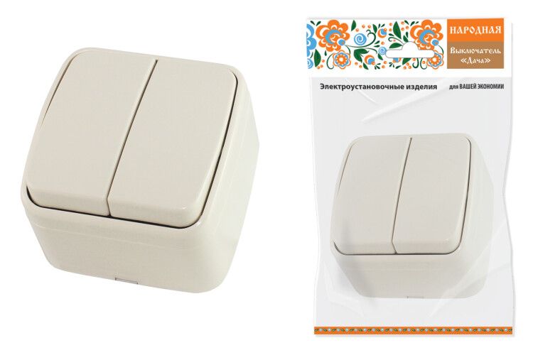 Выключатель 2-кл. открытой установки IP20 10А, сл. кость "Дача" Народная | SQ1824-0015 TDM