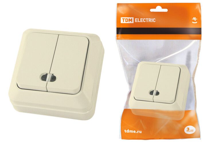 Выключатель 2-кл. открытой установки с подсветкой IP20 10А, сл. кость "Ладога" | SQ1801-0008 TDM