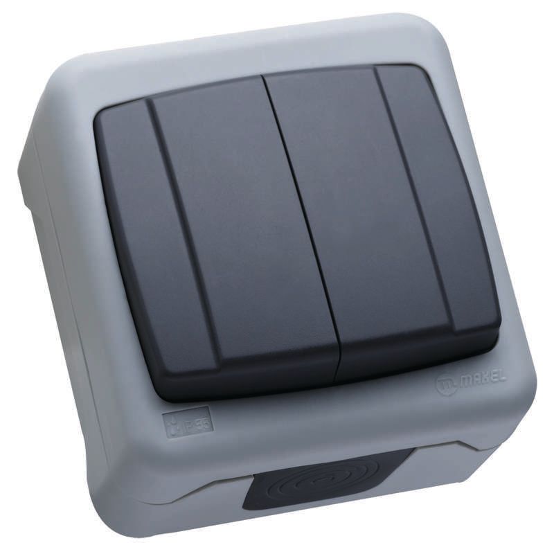 Выключатель двухклавишный IP55 герметичный серый (пружинный зажим) - 36064103 Makel