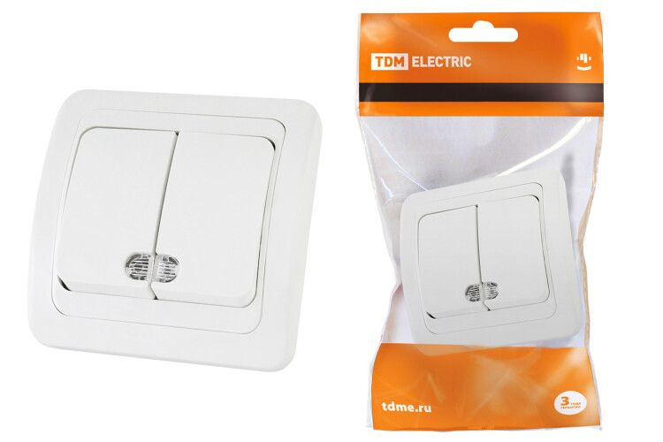 Выключатель двухклавишный с подсветкой 10А белый ''Валдай'' - SQ1804-0006 TDM
