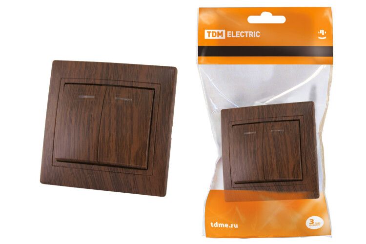 Выключатель 2 кл. с подсветкой 10А "ЭКО" (бук) "Таймыр" | SQ1814-0305 TDM