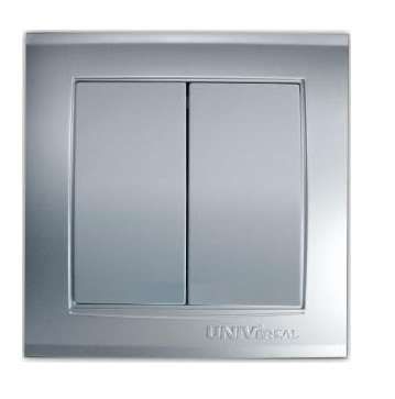 Выключатель двухклавишный 10А IP20 серебристый СП - надёжное устройство для управления двумя группами освещения в помещениях с нормальными условиями эксплуатации. Выполнен в серии «Бриллиант» от бренда Универсал, артикул 7949650, совмещает эргономичный дизайн и проверенную электротехническую начинку.