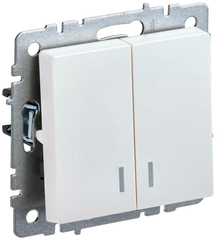 Выключатель двухклавишный с индикацией 10А ВС10-2-1-БрЖ жемчужный предназначен для включения и выключения двух независимых светильников или групп освещения - например, основного и ночного света, люстры и точечных светильников. Подходит для установки в жилых квартирах, офисах, гостиницах и других объектах с внутренней электропроводкой. Индикация позволяет легко найти выключатель в темноте - светодиод подсвечивает клавишу при отключенном состоянии.