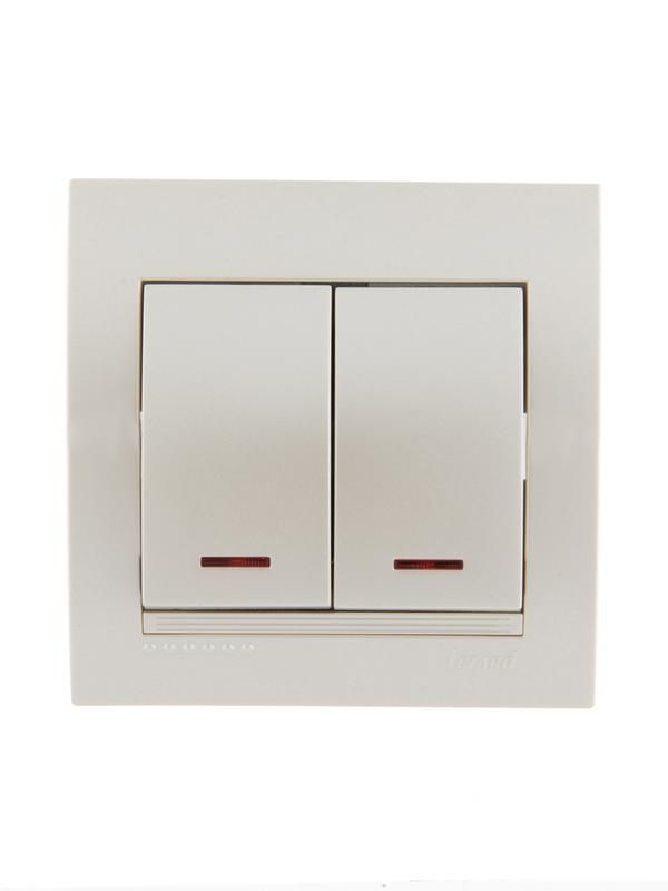 Выключатель 2-клавишный с подсветкой Lezard 702-3030-112 предназначен для удобного управления двумя группами светильников в помещениях с повышенной влажностью или слабой видимостью. Металлическая рамка и перламутровый корпус обеспечивают долговечность и эстетичный внешний вид, а подсветка позволяет легко найти выключатель в темноте.