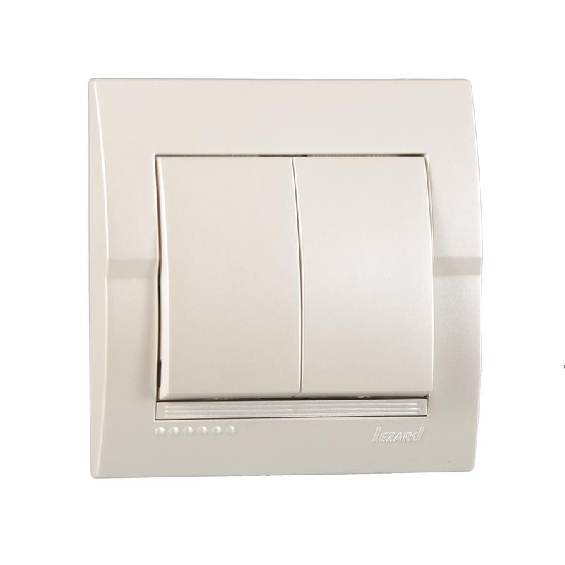 Выключатель 2-клавишный 10А жемчужно-белый металлик от бренда Lezard, артикул 702-3030-101 - это надёжный бытовой и промышленный коммутатор для управления двумя группами освещения. Материал корпуса и цвет исполнения обеспечивают эстетичный вид в интерьере, а конструкция соответствует требованиям ГОСТ Р 51321.1-2007.