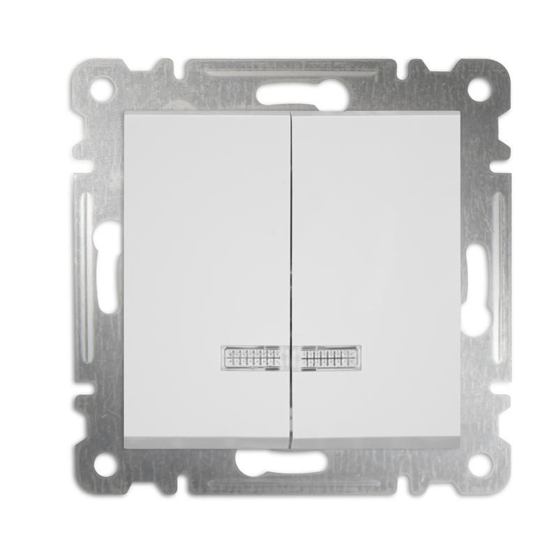 Выключатель 2-кл. СП Karea 10А IP20 с подсветкой пружинным зажимом механизм бел. Makel 57001123