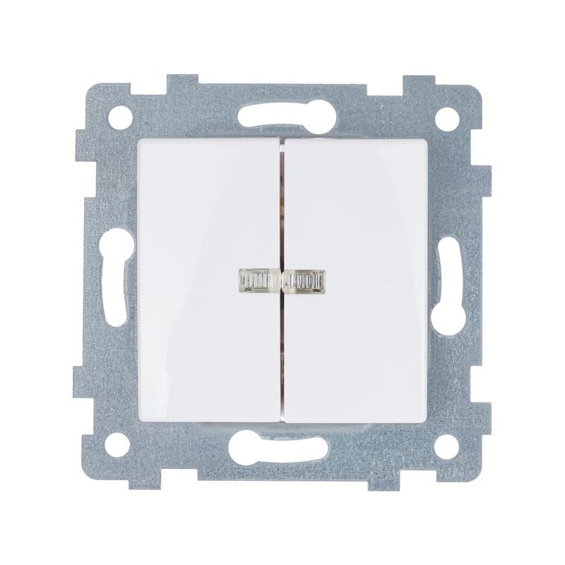 Механизм выключателя двухклавишного скрытой установки со светоиндикацией 10А IP20, белый от Кунцево-Электро (артикул 110028) предназначен для управления двумя группами освещения в помещениях с внутренней проводкой. Устройство сочетает функциональность классического выключателя с индикатором положения клавиш - удобно для темноты.