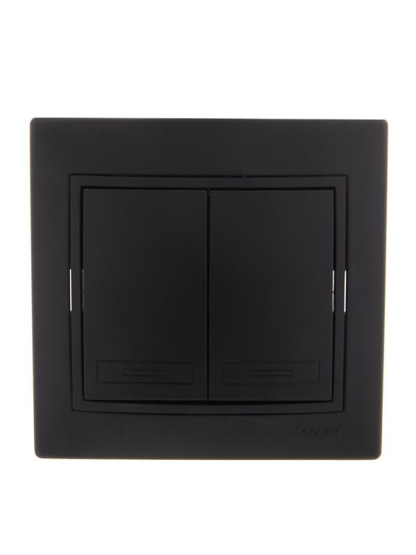 Выключатель Lezard 701-4242-101 - двухклавишный устройство для коммутации освещения в помещениях с низкой влажностью. Модель из серии MIRA отличается компактной рамочной конструкцией и матовой черной вставкой из бархатистого пластика, обеспечивающей комфортное тактильное восприятие.