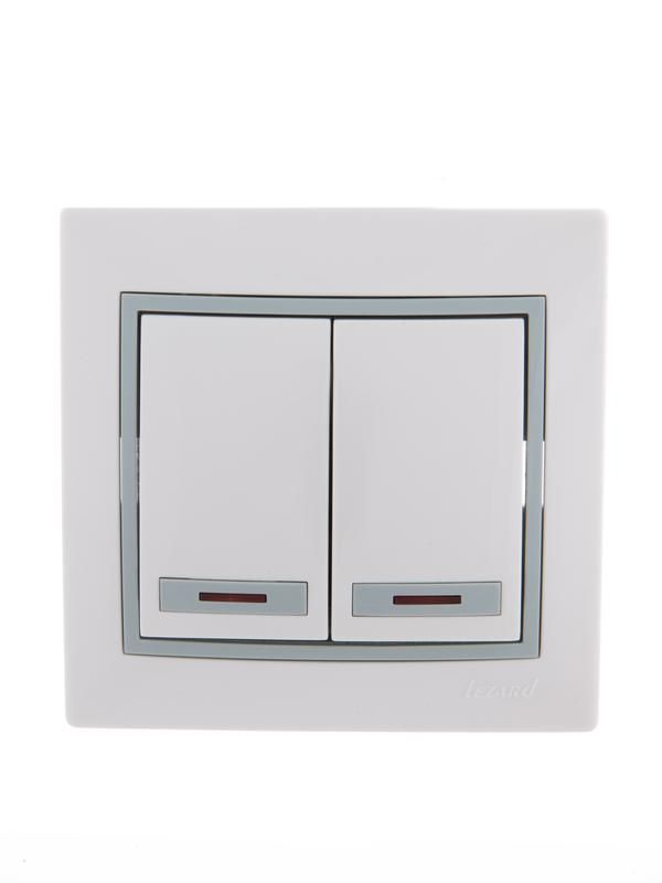 Выключатель двухклавишный с подсветкой 10А IP20 с серой вставкой белый от бренда Lezard (арт. 701-0215-112) предназначен для удобного управления двумя группами светильников в помещениях с нормальными условиями эксплуатации. Модель из серии MIRA сочетает надежную коммутацию, встроенную подсветку и возможность замены декоративной вставки.