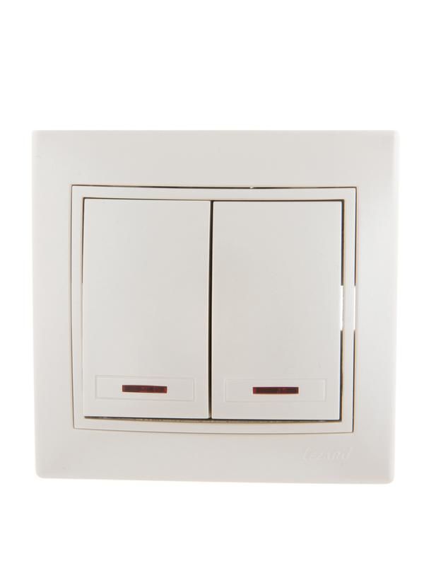 Выключатель двухклавишный с подсветкой Lezard 701-3030-112 - компактное устройство для управления двумя группами светильников в помещениях с повышенной влажностью или сложными условиями освещения. Материал корпуса и жемчужно-перламутровая окраска обеспечивают эстетичный вид, а подсветка упрощает поиск в темноте.