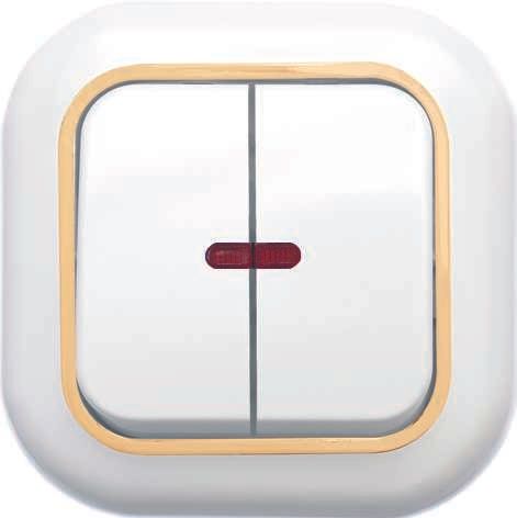 Выключатель 2-клавишный с индикацией белый/золотой 10А IP20 С56-175 от бренда Кунцево-Электро - это надёжный коммутационный аппарат для управления двумя группами освещения в жилых и офисных помещениях. Благодаря встроенной индикации и компактной форме он удобен для повседневного использования и легко интегрируется в стандартные монтажные коробки.