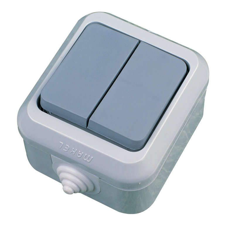 Выключатель двухклавишный серый IP44 - 18101 Makel