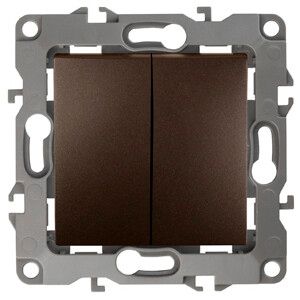 Выключатель двойной 10А 250В, без монтажных лапок, бронза, серия ЭРА 12, 12-1004-13 - это надёжный внутренний выключатель для управления двумя группами освещения или нагрузок до 10 А. Подходит для установки в стандартные распределительные коробки, особенно там, где важна простота монтажа и долгий срок службы контактов из латуни со сплавом серебра.