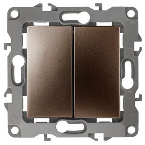 Переключатель двойной 10А 250В, IP20, бронза, серия ЭРА 12, 12-1106-13 - устройство для коммутирования двух цепей в одной точке, предназначенное для скрытой установки в подрозетники. Подходит для управления освещением с двух мест, например, в коридорах, лестницах или спальнях. Механизм выполнен из термопласта, совместим с рамками серии ЭРА 12 и имеет безвинтовые клеммы для ускоренного монтажа.