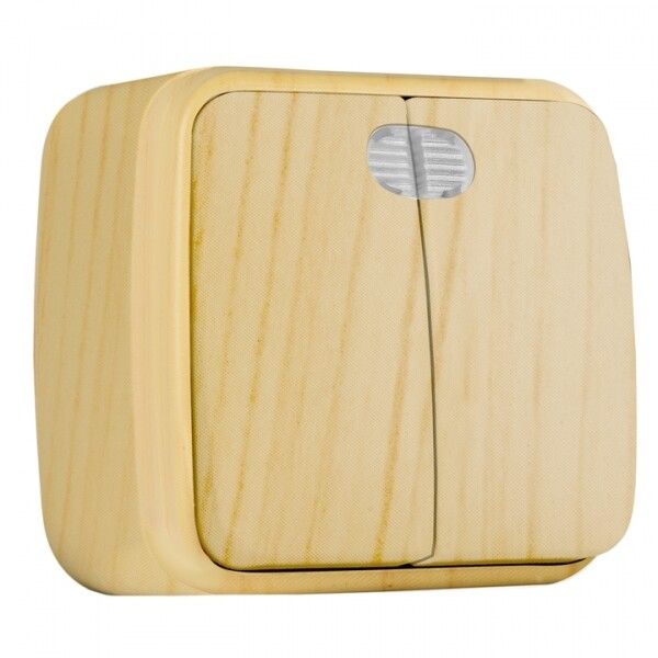 Выключатель двухклавишный ОП Минск 10А с индикатором светлое дерево - EGV10-123-30 EKF
