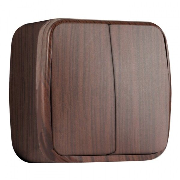 Выключатель 2-клавишный открытого монтажа 10А темное дерево предназначен для коммутации двух независимых цепей освещения. Подходит для установки в жилых домах, офисах, административных зданиях и других объектах, где используется открытая проводка. Удобен там, где требуется частое переключение света - например, в коридорах, туалетах, на лестницах или в мастерских.