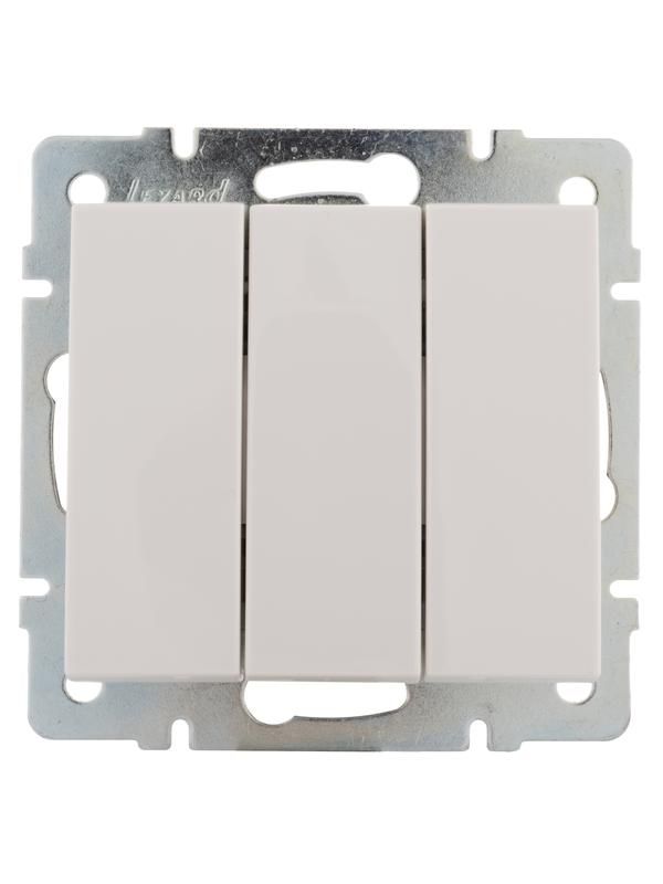 Выключатель 3-клавишный скрытого монтажа Lezard 703-0288-109 предназначен для коммутации освещения в помещениях с использованием трёх независимых групп светильников. Механизм выполнен из прочного поликарбоната, устойчив к механическим воздействиям и подходит для установки в стандартную подрозетник. Его белый цвет легко сочетается с большинством интерьеров.