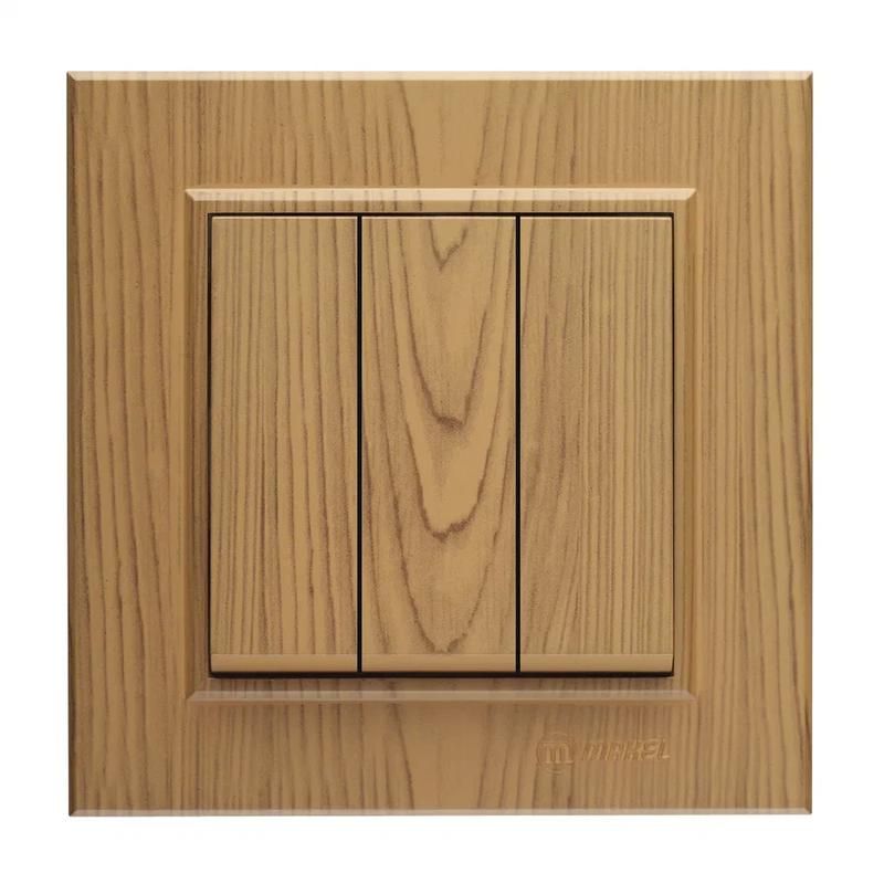 Выключатель трехклавишный Makel 56101091 из серии Karea предназначен для управления тремя группами освещения или нагрузок до 10 А в помещениях с нормальной влажностью. Материал корпуса - дубовый узор, что делает его подходящим для интерьеров в натуральном стиле.