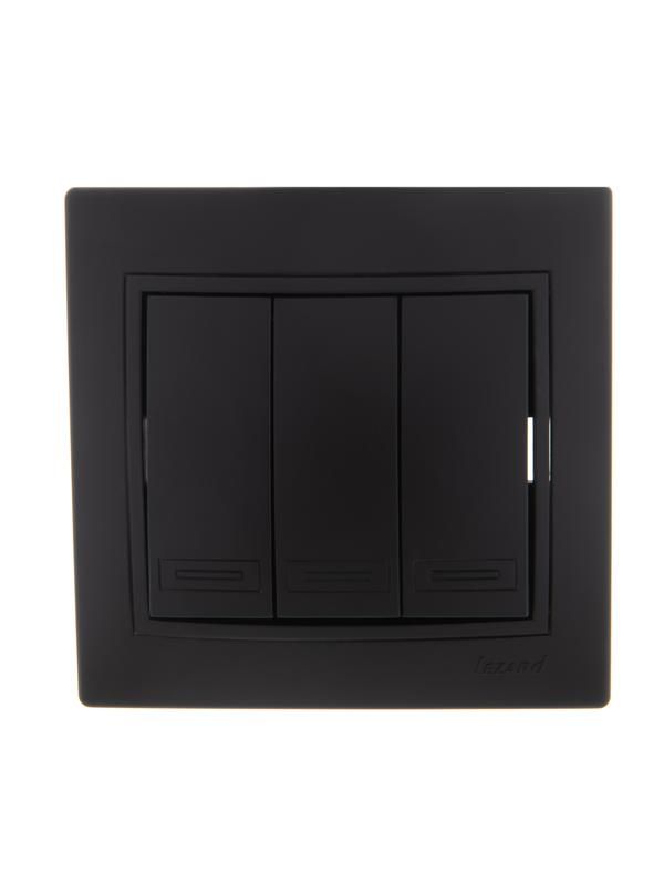 Выключатель 3-клавишный 1-пост 10А IP20 со вставкой черного бархата от Lezard (артикул 701-4242-109) предназначен для коммутации освещения в жилых и офисных помещениях. Его компактная рамочная конструкция с матовой черной вставкой обеспечивает эргономичное управление тремя группами света из одного места.