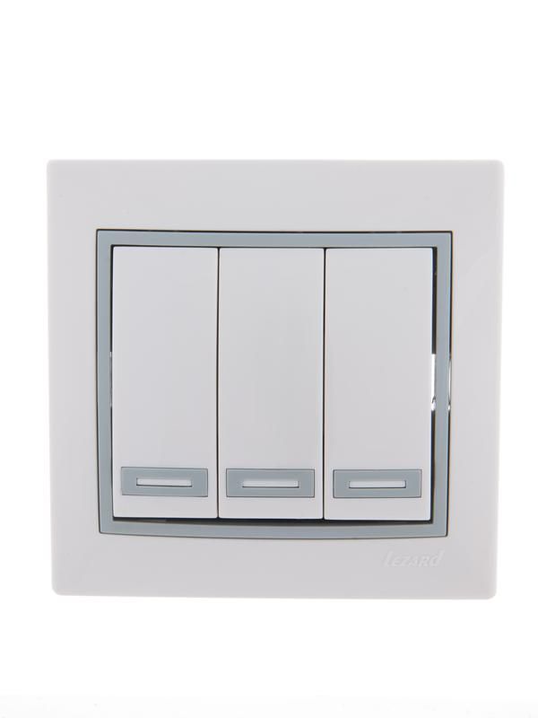 Выключатель 3-клавишный Lezard 701-0215-109 предназначен для ручного включения и отключения трёх независимых цепей освещения. Подходит для контроля света в комнатах с несколькими зонами: например, потолочные светильники, бра, подсветка ниш или санузла. Применяется в жилых домах, офисах, магазинах и других помещениях с постоянным управлением освещением. Не предназначен для управления силовым оборудованием, двигателем или нагрузкой выше 10 А.
