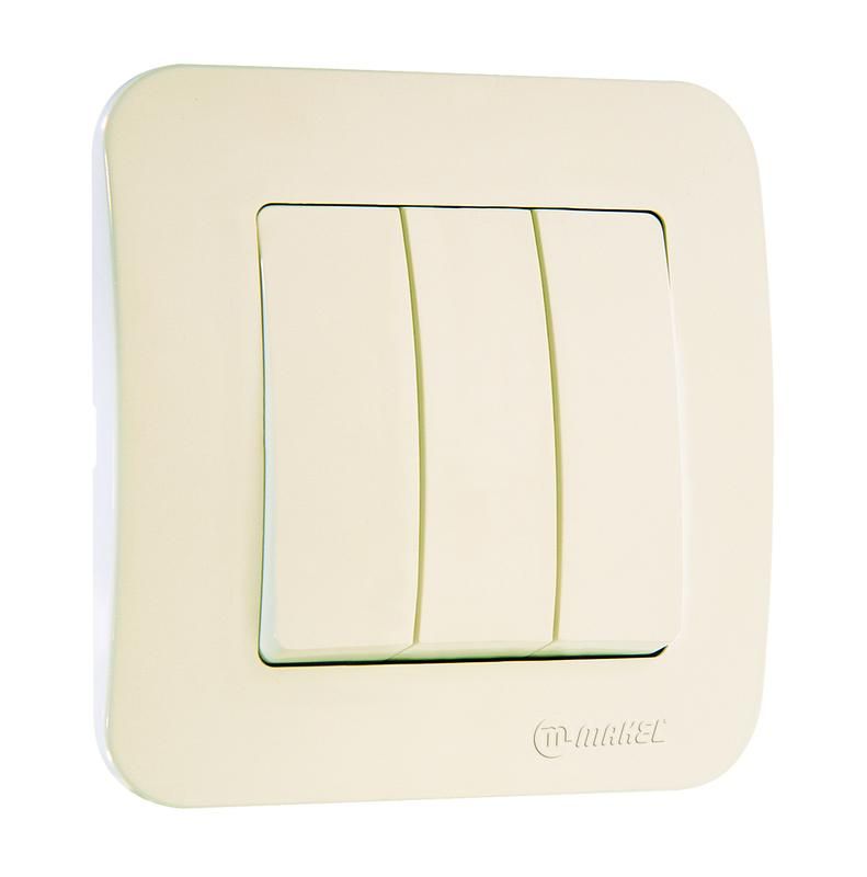 Выключатель 3-кл. СП Lillium N 10А IP20 крем. Makel 55291