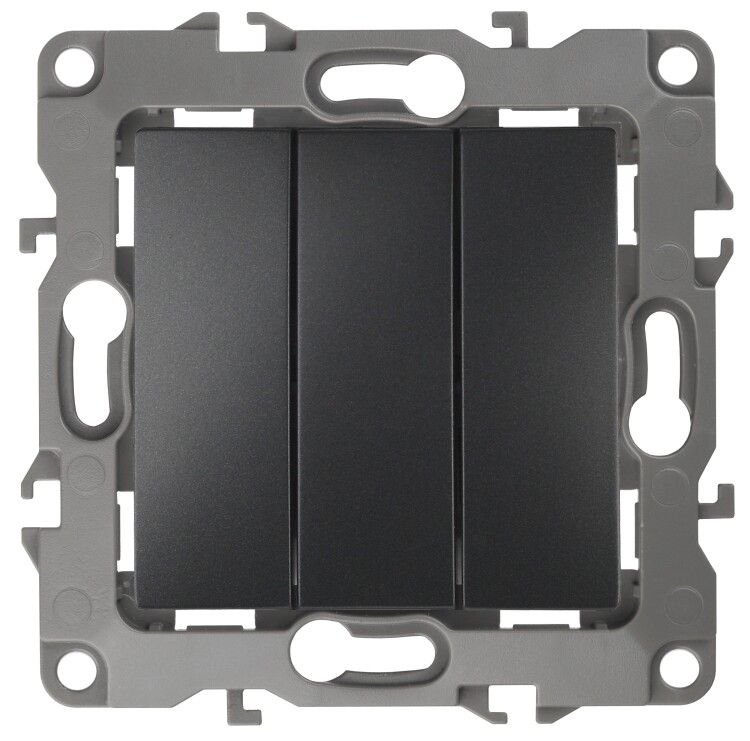 Выключатель трехклавишный скрытого монтажа антрацит 10А 250В автоматические (безвинтовые) ЭРА 12 12-1107-05 - Б0014673