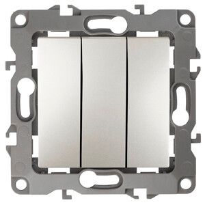 Выключатель тройной 10АХ-250В, IP20, механизм, перламутр, серия ЭРА 12 используется для коммутации трех независимых цепей освещения - например, потолочных светильников, бра, подсветки ниш или декоративного освещения. Подходит для установки в квартирах, домах, офисах и других объектах с внутренней проводкой. Не предназначен для управления силовым оборудованием мощностью выше 2,5 кВт (при 250 В).