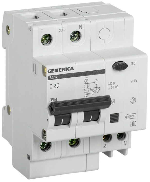 | Выключатель автоматический дифференциального тока 2п 20А 30мА АД12 GENERICA MAD15-2-020-C-030 | 20.02.2026 | 394 шт. | 731,68 ₽ | шт. | от 1 дня |