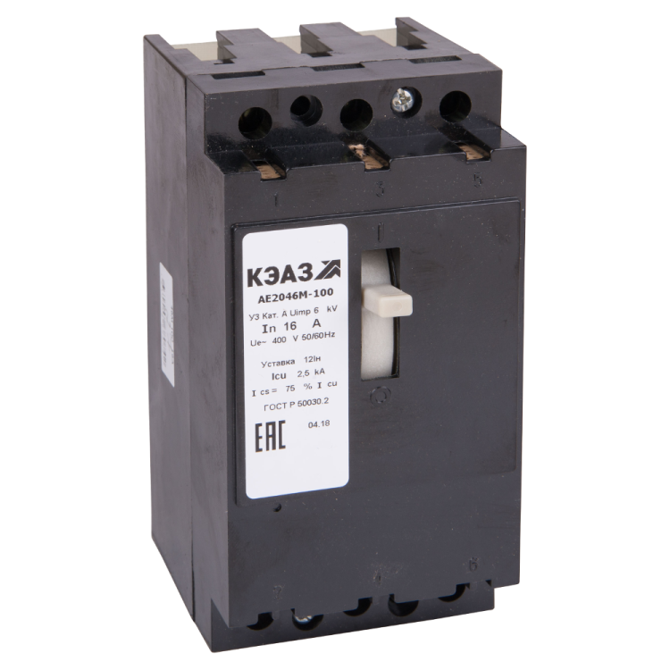 Автоматический выключатель АЕ2046М-100 1А 12Iн 400В AC У3 от КЭАЗ - трёхполюсный прибор в литом корпусе для защиты электрических цепей переменного тока от перегрузок и коротких замыканий. Подходит для стационарной установки на DIN-рейку в условиях умеренного климата, обеспечивает надёжную коммутацию при токе до 1 А и напряжении до 400 В.