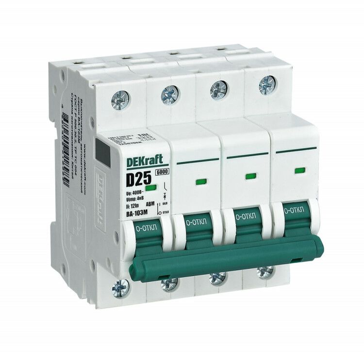 | Выключатель автоматический без теплозащиты четырехполюсный ВА-103М 4P 16А характеристика C 6кА | 12529DEK | Dekraft | 24.03.2026 | 24 шт. | 2 267,95 ₽ | шт. | от 7 дней |