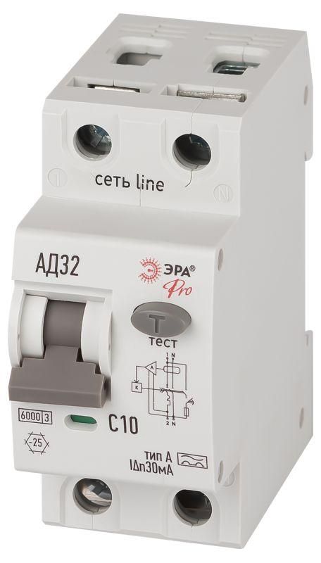 Выключатель автоматический дифференциального тока 2п (1P+N) C 10А 30мА тип A 6кА АД-32 электрон. PRO D326E2C10A30 Эра Б0059193