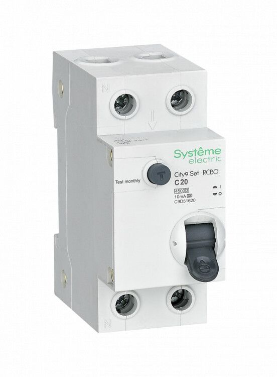 Автоматический выключатель дифференциального тока City9 SE c9d51620 предназначен для защиты человека от поражения электрическим током, а также предотвращения перегрузок и коротких замыканий в однофазных сетях 230 В. Этот аппарат сочетает функции обычного автомата и устройства защитного отключения (УЗО) в одном корпусе, что делает его компактным решением для распределительных щитов.