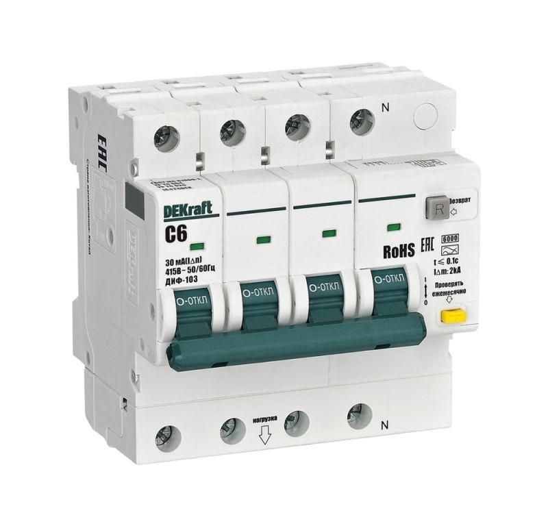 Выключатель автоматический дифференциального тока АВДТ 3P+N 6А 30мА A х-ка C ДИФ-103 6кА | 16426DEK DEKraft APC