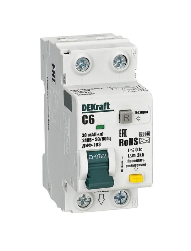 Выключатель автоматический дифференциального тока АВДТ 1P+N 6А 30мА AC х-ка C ДИФ-103 6кА | 16309DEK DEKraft APC