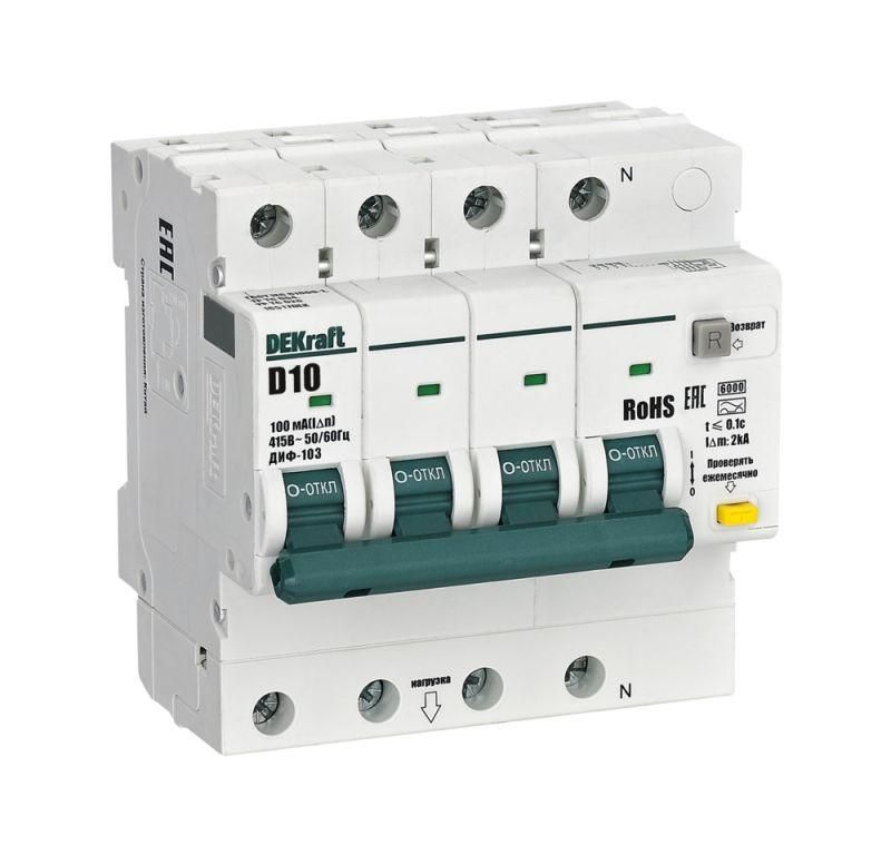 Выключатель автоматический дифференциального тока АВДТ 3P+N 10А 100мА AC х-ка D ДИФ-103 6кА | 16517DEK DEKraft APC