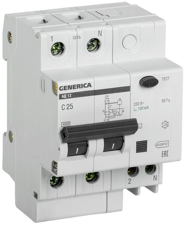 | Выключатель автоматический дифференциального тока 2п 25А 100мА АД12 GENERICA MAD15-2-025-C-100 | 20.02.2026 | 48 шт. | 773,66 ₽ | шт. | от 1 дня |