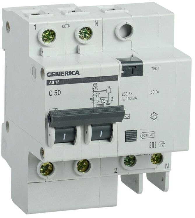 | Автоматический выключатель дифференциального тока 2П 50А 100мА GENERICA АД12 | 17.03.2026 | 5 шт. | 917,52 ₽ | шт. | от 3 дней |