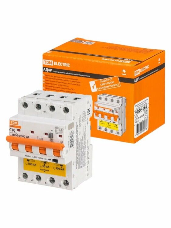 | Выключатель автоматический диффренциального тока АД4P 4Р С10 30-100-300мА 6кА тип АС | SQ0204-0628 | TDM | 12.03.2026 | Под заказ | 4 479,62 ₽ | шт. | от 30 дней |
