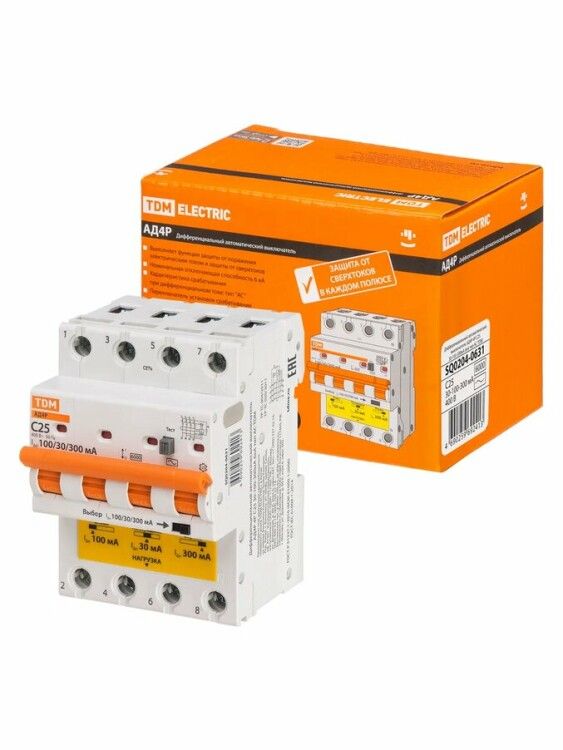 | Выключатель автоматический диффренциального тока АД4P 4Р С25 30-100-300мА 6кА тип АС | SQ0204-0631 | TDM | 06.03.2026 | Под заказ | 4 396,03 ₽ | шт. | от 30 дней |